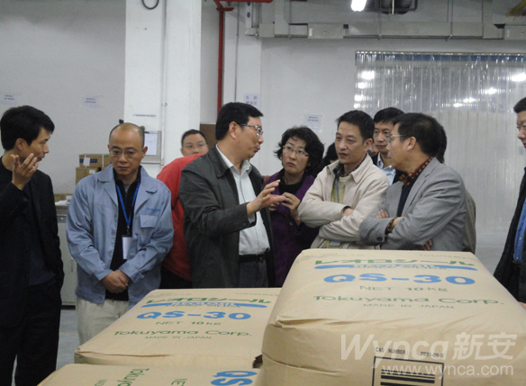 考察團聽取了新安天玉總經理魏濤關于企業生產情況、產品特性和市場前景的介紹,實地參觀了開發室、實驗室和生產車間等,并就安全生產、環境保護等問題與考察團成員進行了交流。考察期間,季誠建總經理還專門來到新安天玉員工宿舍,詳細了解員工生活情況,并就圍繞新安文化理念全面提升管理、增強凝聚力提出了要求和期望。