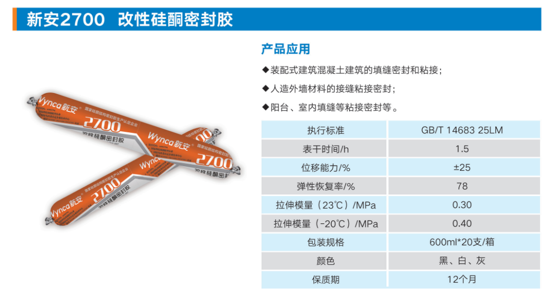 作為綠色建筑行業的主要細分產業之一,近年來裝配式建筑市場規模保持著較快的增速,裝配式建筑膠市場也得到較快發展。新安2700改性硅酮密封膠因其良好的粘接、耐候、位移能力及可涂刷性等性能,獲得市場的青睞和認可。