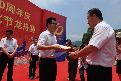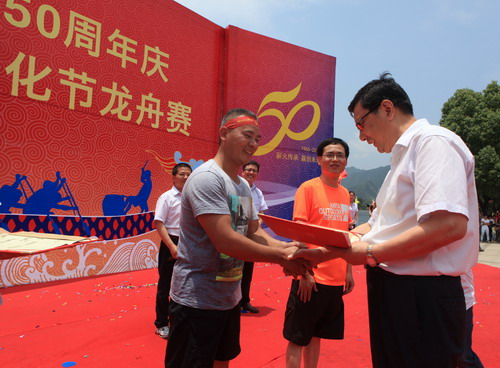 瀏覽量:4657 6月20日,新安集團創建50周年慶暨第四屆新安文化節龍舟賽在新安江上舉行,共有16支代表隊參加本次競賽。
